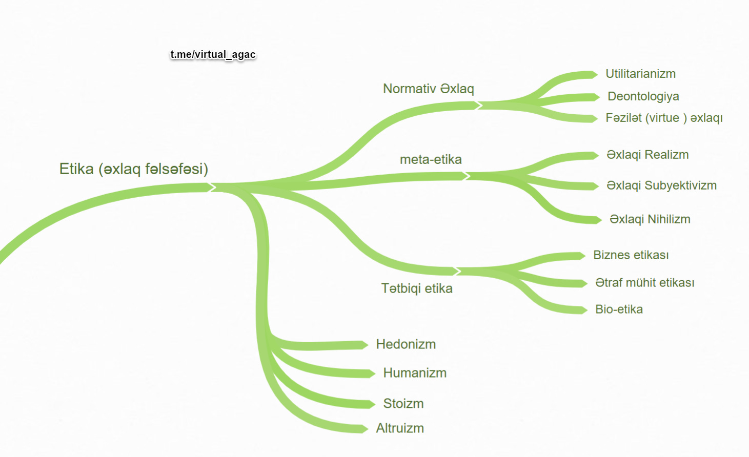 Etika: Əxlaqi dəyərləri, doğru və yanlış, yaxşı və pis anlayışlarını araşdırır.
